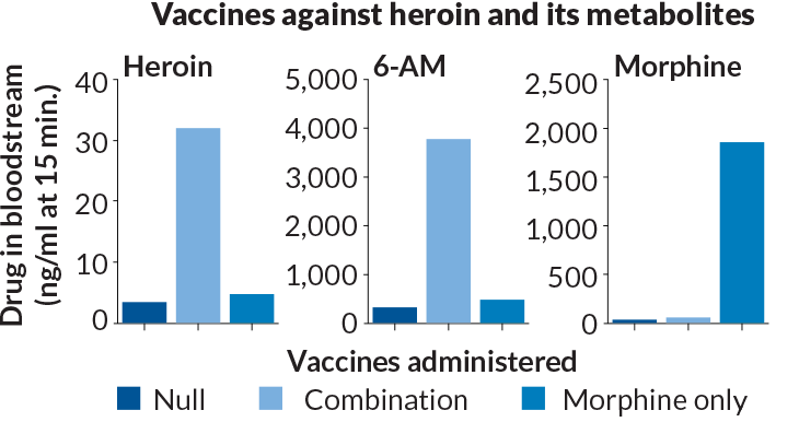 The vaccine showed similar effectiveness in nonhuman primates, Janda reported in May at the American Psychiatric Association’s annual meeting in Atlanta. In addition, the vaccine is specific to heroin metabolites, not other opiates. A vaccine that’s too broad could potentially make patients immune to the effects of all prescription opioids, leaving them vulnerable if they become injured and need pain relief.