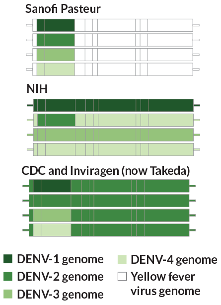 A dengue vaccine developed at the National Institutes of Health and tested at Johns Hopkins and the University of Vermont is in phase III trials, the last and largest phase of experimental testing. That vaccine is also made from a weakened version of live dengue viruses and requires only one dose. In early studies, the vaccine appeared to confer only weak protection to serotype 2, which might leave a gaping hole in immune defense.