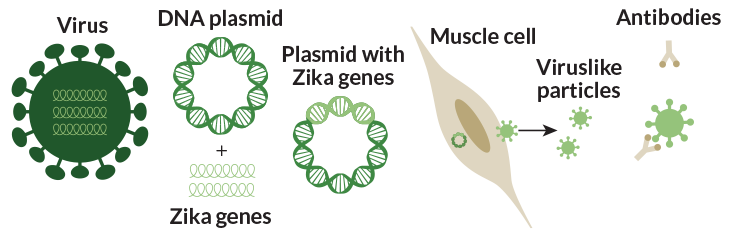 “It’s like you’re making your own viruslike particle,” says Julie Ledgerwood, chief of the clinical trials program at the NIH’s vaccine research center. The particle looks like a piece of virus — called an antigen — that is just enough to activate the immune system but not enough to cause disease. It’s a straightforward technology successfully tested against West Nile virus, another mosquito-borne infection, and described in a study published in 2011 in the Journal of Infectious Diseases. In that experiment, 30 volunteers received a vaccine that contained the genes for the outer coat of West Nile and their bodies began making antibodies to the virus.