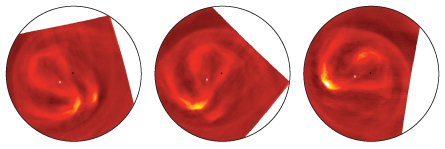 Earth’s hurricanes are maintained by moist air condensing and releasing energy. On Venus, Titov says, the vortices appear to be the result of a global pattern of atmospheric circulation known as “superrotation.” The clouds on Venus fly around the planet at speeds up to 150 meters per second, completing a round trip in just four Earth days, even though a single Venusian day lasts for 243 Earth days. Whatever is cranking up the clouds might also drive the vortices.