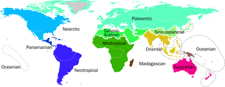 The biggest change from older maps, Lessard says, stretches the old Palearctic realm of northern Eurasia into the Western Hemisphere.