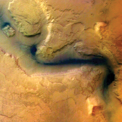 Mars Express’ high-resolution stereo camera, which will map the entire planet in 3D during the craft’s 2-year mission, has recorded a 1,700-kilometer-long swath of Valles Marineris, the Grand Canyon of Mars. Depicting mountain ranges, valleys, and mesas that may have been carved by water, the image is the first large-scale picture of a region on Mars showing details as small as 12 meters across.
