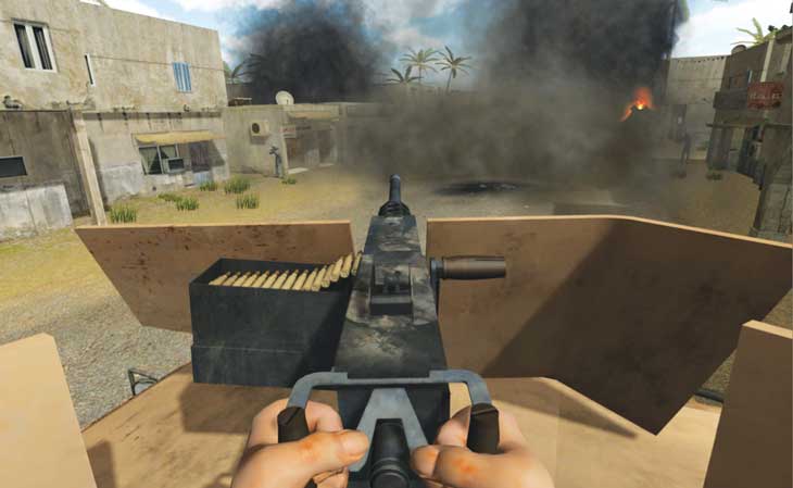 To relive a traumatic memory in this VR system, the patient first chooses the setting, like a roadway checkpoint or a hospital. As the patient narrates the memory aloud, the therapist customizes the scene. If “the patient is saying, ‘I’m driving down a roadway,’ the therapist sets it up,” Rizzo says. If the memory happened around noon, the therapist sets the virtual clock accordingly. If the patient recalls the rumble of a Humvee, “Rrrrrp. Crank up the vehicle sound.”
