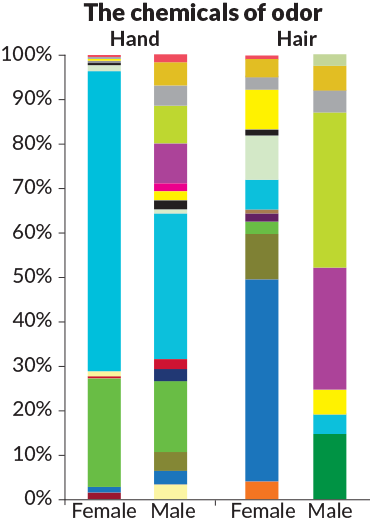 The soap people use and food they eat contribute to their odor. After whittling those away to uncover the genetic component of scent, Furton’s team found that each person’s samples gave off a distinguishing chemical blend. “It’s almost like a human bar code,” Furton says.