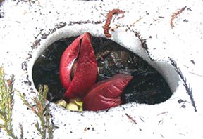 The eastern skunk cabbage (Symplocarpus foetidus) in North America and Asia also keeps warm, independent of air temperature, Roger Knutson reported in 1974. The insect-pollinated plant flowers early in the year, sometimes by New Year’s Day in mid-Atlantic states. Its bloom, a thick-walled, teardrop-shaped spathe surrounding a fat stub covered with florets, can melt holes in the snow cover (SN: 8/21/99, p. 123).