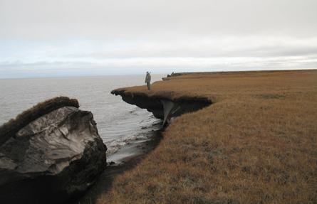 Four-week time-lapse photography of the Alaska coast at Drew Point shows loss of the coastal sediments in July, 2008.