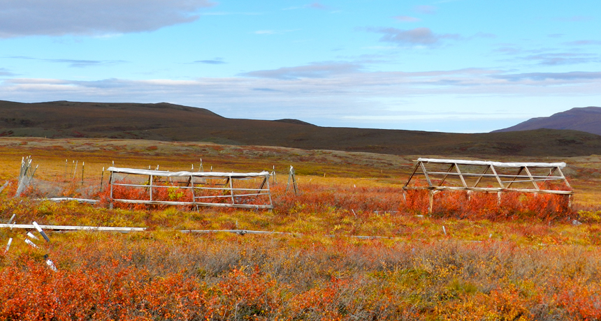 TRUE GREENHOUSE GASES Researchers used greenhouses to artificially warm tundra (shown, in autumn) for 20 years. They found no net change in the amount of carbon stored in the soil.