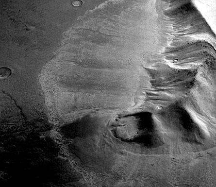 The alternative, that the structures might be mostly ice with just a covering of dirt, wasn’t on anyone’s radar screen, recalls Head. The aprons were far away from the poles and no one imagined then that the tilt of Mars’ spin axis had varied drastically over the past 10 million years, as studies have now shown. Variations in the tilt mean that the poles were warmer in the past. Researchers hypothesize that during that time some of the frozen water at the poles evaporated into the atmosphere and then settled down onto the then-colder mid-latitude regions.