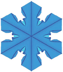 Snowflake simulations recently entered a new phase. A few years ago, Reiter began devising a way to mimic ice-crystal growth by means of cellular automata that use ranges of numbers, rather than just the 1s and 0s typical of simpler cellular automata, to characterize grid cells. He reports using such “fuzzy” automata to simulate snowflake growth around hexagonal seed crystals. Replicating a process that occurs in clouds, the diffusion of water vapor controlled where and when new hexagons of ice would be added to the growing crystal.