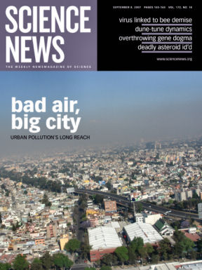 The growth of population in cities leads to increased energy consumption within relatively small areas, a trend that typically decreases air quality and increases the prevalence of adverse health effects, says Luisa T. Molina, an atmospheric scientist at the Massachusetts Institute of Technology. Those consequences are particularly pronounced in Mexico City, she noted in May at a meeting of the American Geophysical Union in Acapulco, Mexico. In recent years, for example, ground-level concentrations of ozone in Mexico City have exceeded the country’s air-quality standards 284 days per year, on average. Geography doesn’t help: Mexico City lies in a broad basin ringed by tall mountains that can block the movement of air masses that might clear out pollution.