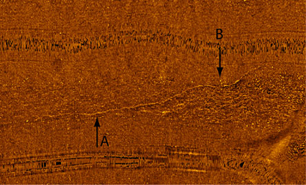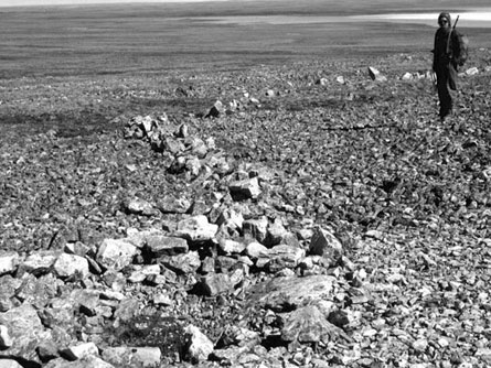 The researchers used side-scan sonar and video-equipped, remotely operated vehicles to survey two patches of lake bottom that together cover about 72 square kilometers of the submarine ridge, Meadows says. In one of those areas, sonar data reveal a sinuous, 350-meter–long string of small boulders that seem to have been arranged to visually accentuate a low ridge. Although generally unimpressive to humans — a person could easily step across the shin-high line of boulders, and even a small dog could leap it with a single bound — such structures are used today by arctic hunters to effectively guide caribou, Meadows notes. Groupings of large boulders at each end of the structure could have been used as decidedly low-tech hunting blinds.