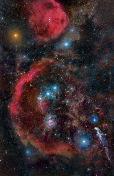 With a radius about 900 times that of the sun, Betelgeuse is a monstrous star that is nearing its end. Eventually, it will no longer be able to support its own weight, and its core will collapse. A shock wave from that collapse will speed outward, violently expelling the star’s outer layers in a massive explosion known as a supernova. When Betelgeuse detonates, its cosmic kaboom will create a light show brighter than the full moon, visible even during the daytime. It could happen tomorrow, or a million years from now.