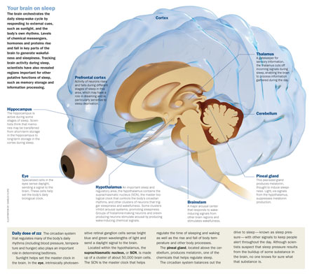 Sleep and wake are part of the metabolic cycle in the brain, Pack says. In this view, sleep is a time for replenishment and construction of cellular parts. “So when wakefulness comes along, you have the building blocks to make synapses,” the junctures between neurons through which signals flow.