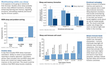Walker theorizes that this process may go awry in post-traumatic stress disorder. He lays out his case for sleep’s role in processing emotional memories in the Annals of the New York Academy of Science’s Year in Cognitive Neuroscience 2009. Removing the emotional blanket from memories is probably possible only during sleep, when outside stimulus is shut off, he says.