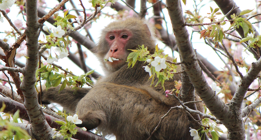 MONKEY BUSINESS Wild monkeys, Macaca fuscata, that live near the Fukushima nuclear plant have low blood cell counts, possibly due to radiation exposure.