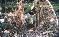 Pay no attention to the metal stake underneath this female bowerbird. She’s the fembot designed by University of Maryland scientists to test the female role in satin bowerbirds’ showy courtship. Patricelli