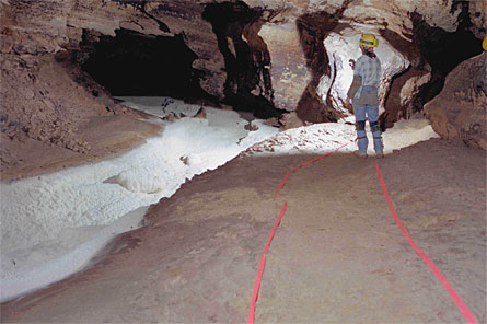 The formation’s brilliant white color, as well as its sinuous path through Fort Stanton Cave, near the town of Capitan, has led cavers to dub the feature Snowy River. During recent studies in the cave, scientists found that the typically dry Snowy River occasionally carries water, reported Lewis Land, a geologist at the National Cave and Karst Research Institute in Carlsbad, N.M., during the annual meeting of the Geological Society of America.