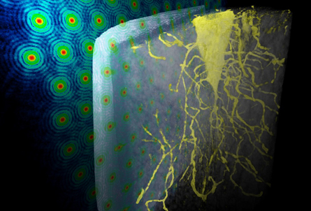 An international team of scientists used the method to look inside a tiny piece of mouse bone to reveal inner details as small as 100 nanometers, such as hidey-holes for bone cells and connecting channels between those pockets.