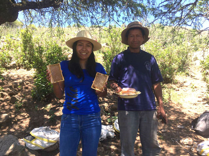 Conservation biologist Ximena Velez-Liendo, a self-described “bear-ologist”, directs the Andean Carnivore Conservation Program, which trains farmers in sustainable, forest-friendly practices that benefit Andean bears and people. Here, beekeepers in Hoyadas, Bolivia learn how to replace queen bees.