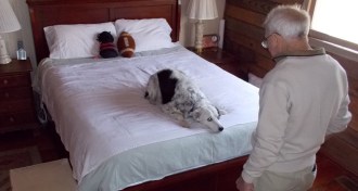 After years of word training, a canine intuitively figures out how simple sentences work.