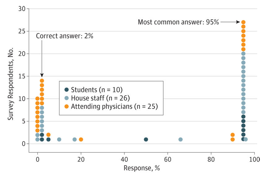If you said 95 percent, you’re wrong. But don’t feel bad. It puts you in the company of a lot of highly educated doctors.