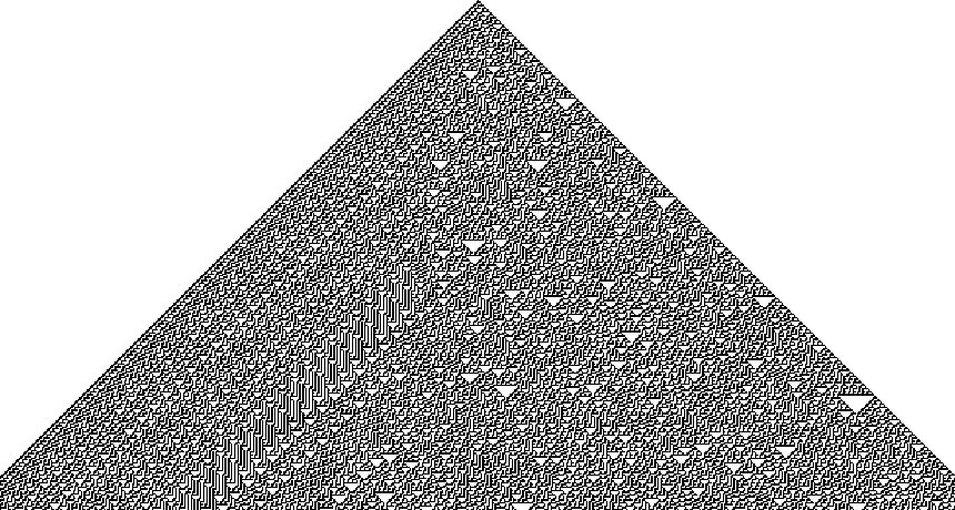 As described in depth in Wolfram’s book, the simplest cellular automata are just rows of squares, like pixels on a computer screen (each pixel is a “cell”). A pixel can be either white or black, corresponding to 0 or 1 as in the binary math used by digital computers.