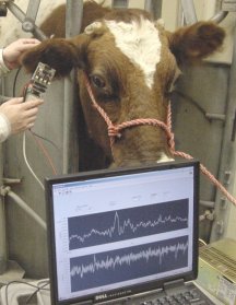 Hoping to improve ways of catching disease in time to stop outbreaks, Andresen’s team has been developing an electronic device that each cow could wear throughout its life. The equipment could track its location via global-positioning-system (GPS) satellites and monitor the animal’s vital signs–all in an electronic form that can be relayed to a farm-based, regional, or even national computer center. The collected data could be used in detailed medical histories of individual animals or as part of a disaster response during a livestock-disease outbreak.