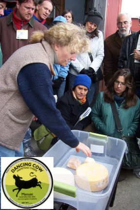 In October, I and a few dozen other reporters attending the Society of Environmental Journalists’ annual meeting in Burlington, Vt., took a field trip to the Dancing Cow Farm. We got a chance to taste a cheese that Karen Getz has named Menuet. Our consensus was that the cheese indeed had an unusual earthy flavor with nut-and-mushroom overtones and, as one agricultural reporter put it, a “subtle herbal character.”