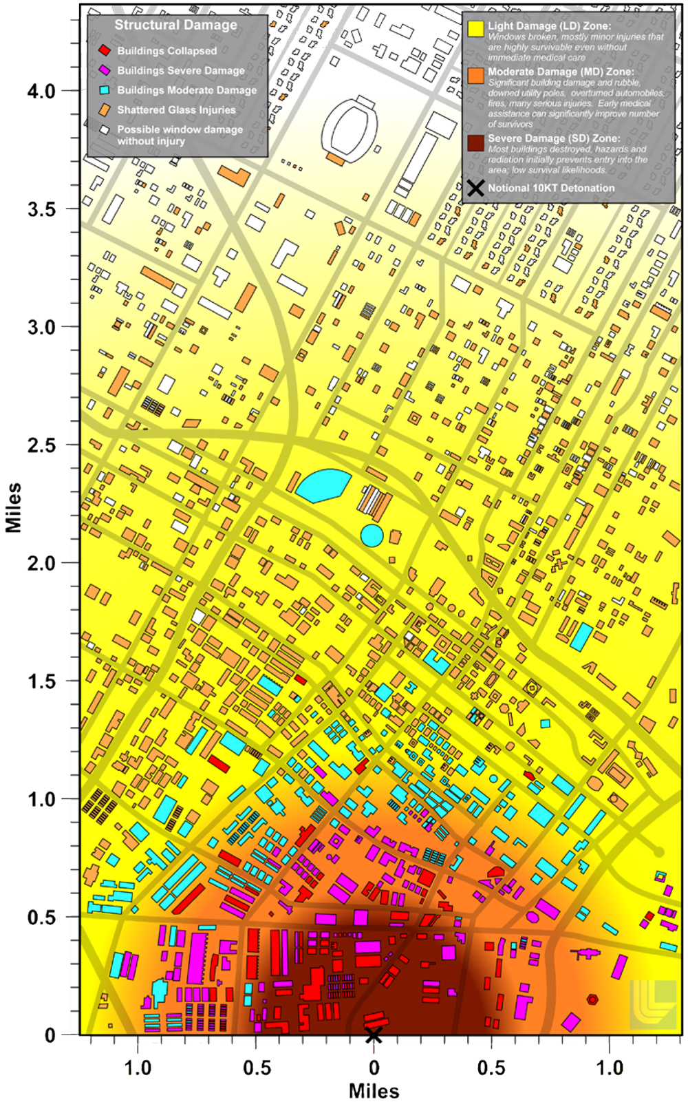One of the first things my fellow survivors and I will face is the highest-stakes math test we’ve ever taken. Let’s say you’re at work in a downtown area when the blast happens. You see a flash, your building shakes and a number of windows shatter. Through one of the gaping holes you see a mushroom cloud forming. There’s no basement, so you run to an interior windowless office. Now what? Hunker down and wait for rescue, or make a dash for your friend’s building three blocks over that has a basement break room?
