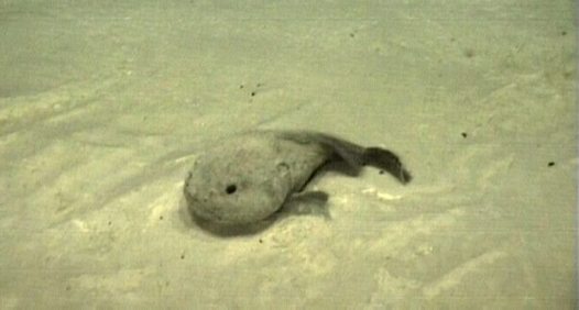 “Species of Psychrolutes have very weak, barely ossified bones, so they look bloblike even in life,” says ichthyologist Ronald Fricke of the Staatliches Museum in Stuttgart. Fricke first described the blobfish Psychrolutes occidentalis from Western Australia in 1990. His research paper in the Japanese Journal of Ichthyology describes the fish as having a limp body with soft bones and thin, loose skin. There are few photos of living blobfish of any species, but an underwater rover captured one of P. occidentalis, and it too is a plump but pretty cute little guy: