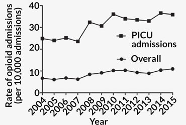 More kids are suffering the consequences of opioid poisoning, an analysis of pediatric intensive care units shows.