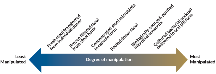The third track would be for “stool-based products.” These would be pills or delivery systems that offer, say, combinations of microbes, rather than the current practice of basically “polishing a turd,” notes von Rosenvinge. These would be regulated as biological products or drugs.