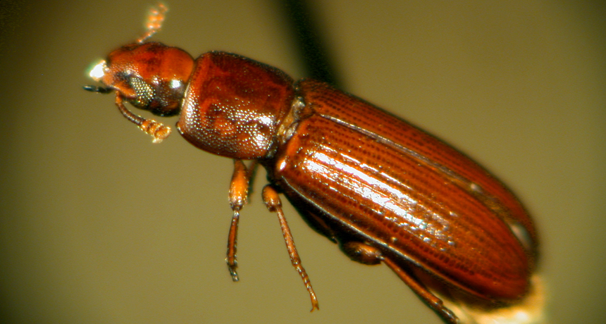 The red flour beetle is one of the species exhibiting same-sex mating behavior.