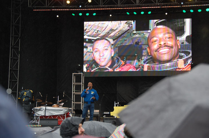 Astronaut Leland Melvin told an entertaining anecdote about getting his start in science in sixth grade when his mom gave him “an age-inappropriate, non-OSHA-approved chemistry set.” At one point, a chemical explosion blew up her living room. But, “that’s what got me hooked on science,” he said.