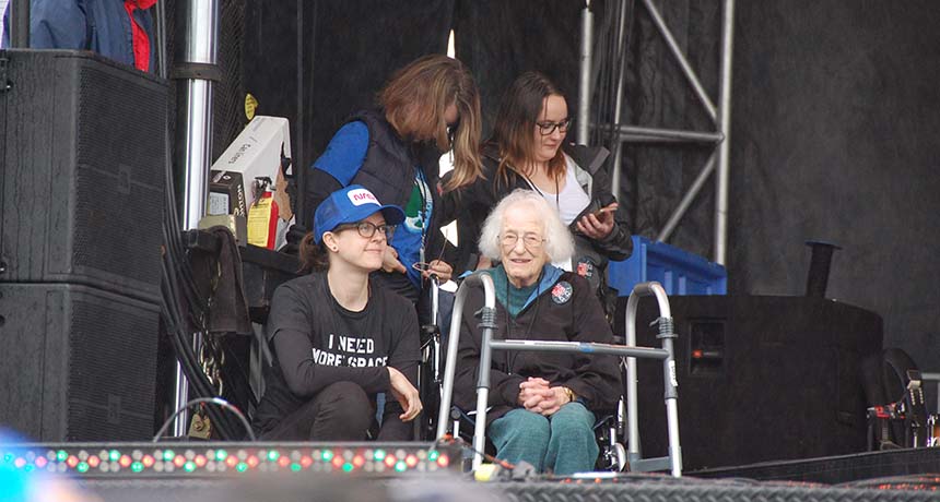 The rally also featured some pioneers of various sorts. Nancy Roman, aka “Mother Hubble,” was the first woman to hold an executive position at NASA in the 1960s.