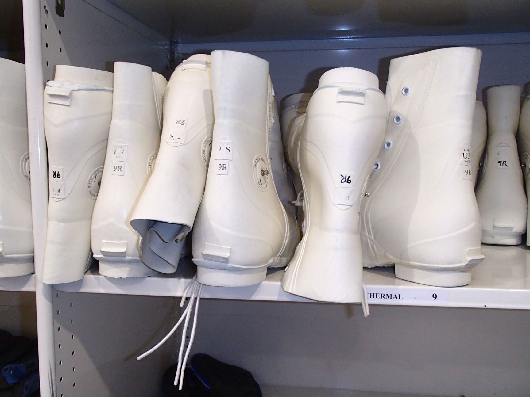 For me, the biggest problem proved the boots. We were originally issued white “bunny” boots (don’t ask where the name comes from; I queried, but no one at the center had a clue). This extreme-weather gear is largely designed to fit men, including the boots. So figuring out what size might adapt to women’s bods can prove a gamble. Hence the mandatory try-ons in the side room of a large warehouse. And those boots they issued just didn’t want to accommodate my high insteps and arches. Neither did the second or third pair they issued. Finally, the wardrobe team gave up on the cute bunny boots and offered me these enormous black clod hoppers (or in this case ice hoppers). When I tried them on with the snow- and wind-breaking coveralls I’d received, the pants just pooled mid-calf to ankle.