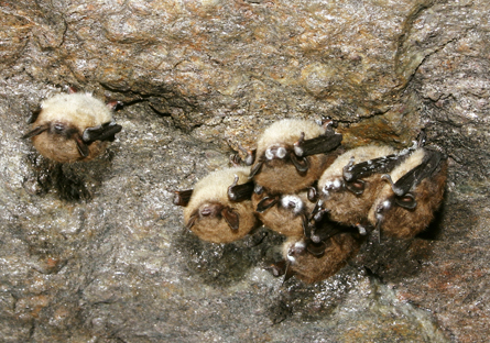 Of note: One species appears to be bucking the trend for its behavioral “type.” Little brown bats, once the most common species throughout the eastern United States, are known to be gregarious and among those densely packed social hibernators. This explains why most white nose victims have belonged to this species. However, since the fungal infection initially hit back in early 2006, a large share of the survivors have changed their nature. They now hibernate singly.