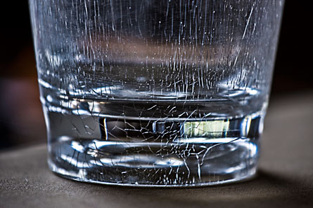 It’s no surprise how BPA gets into polycarbonate food ware. The plastic consists of BPA molecules that have been chemically linked into long chains. However, some of the BPA feedstock never gets bound up into these polymeric chains, which means it’s free to leach into foods and beverages that later make contact with the plastic. The polymers can also break down when the plastic is heated – such as by introducing hot foods, running polycarbonate materials through a dishwasher (even the top rack), or microwaving materials in this plastic. One hint that this breakdown has started: Polycarbonate’s formerly crystal clear appearance takes on a distinctive crackling (see photo).