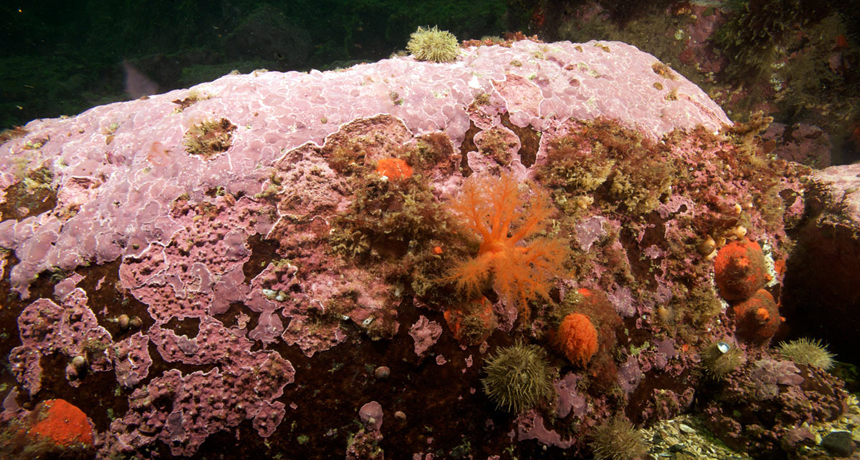 Arctic algae (shown) can live for hundreds of years growing thick crusts that preserve records of sea-ice cover, seawater temperature and climate variability.