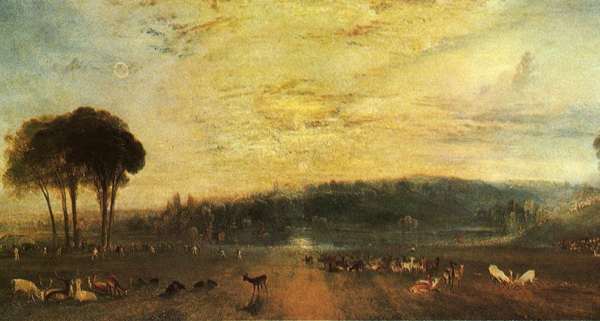 The Lake, Petworth: Sunset, Fighting Bucks, by J. M. W. Turner