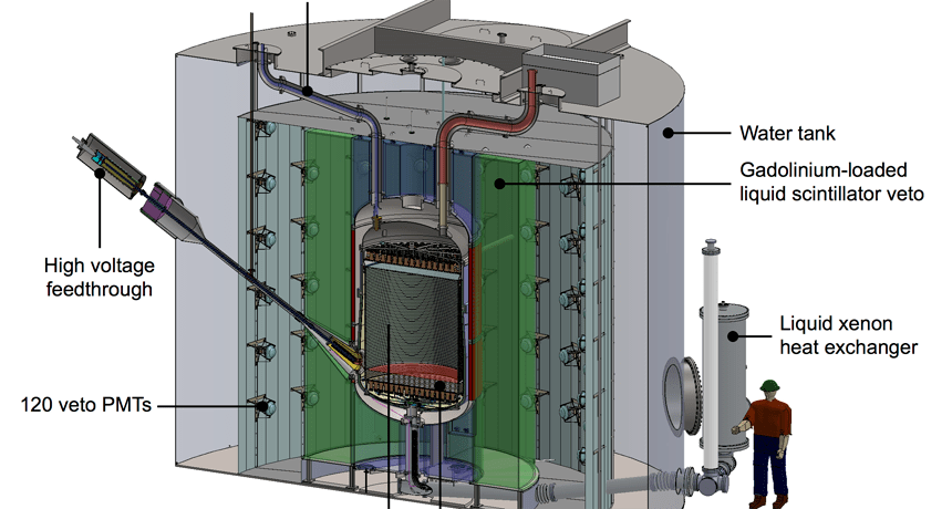 LUX-ZEPLIN, shown in this illustration, is one of three newly supported experiments designed to ferret out dark matter particles that swarm around Earth.