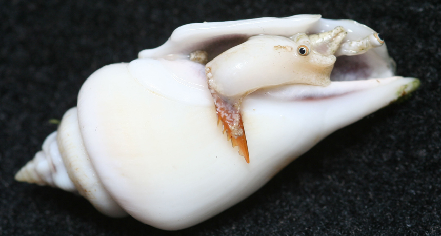 Sea snails, such as this one, use footlike limbs to jump out of the way of attacking predators. But high levels of carbon dioxide can slow or stifle the snails' escape tactic.