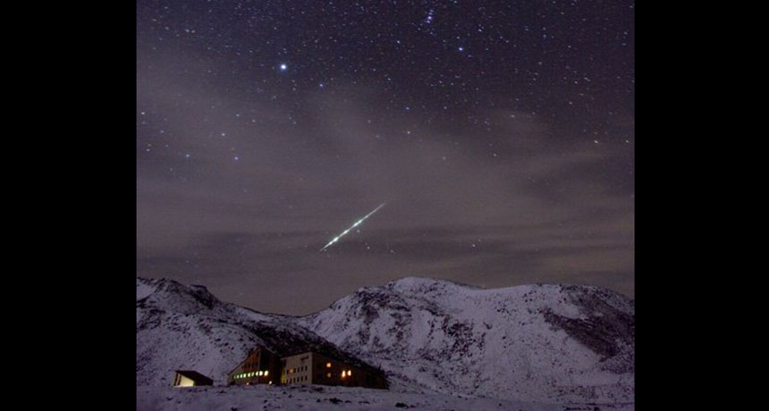 A Taurid fireball in 2005 rivals the brightness of the star Sirius (upper left), the brightest star in the night sky.