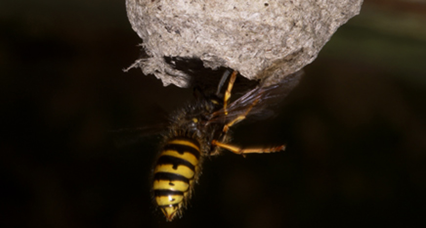 A queen wasp returns to her nest. She and other queen ants and bees release similar chemicals to keep their workers sterile.
