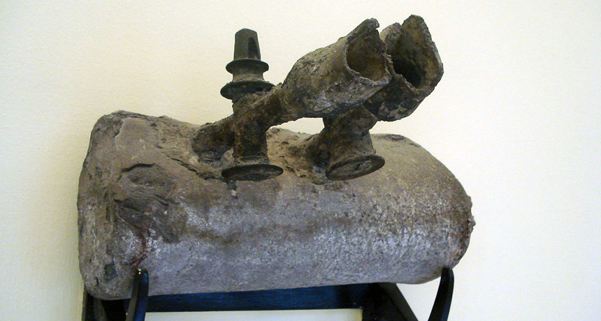 Early Roman plumbing made of lead pipes and taps, such as the segment shown here, increased levels of the metal in the city's drinking water but probably not to concentrations that would have been hazardous to human health, scientists say.