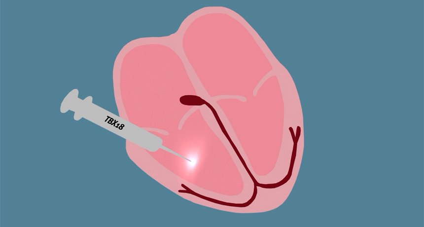 Pigs' defective hearts maintained a healthy rhythm for two weeks when injected with the gene TBX18, researchers report.
