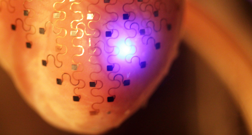 By embedding sensors in a thin sheath of silicon, scientists have created a jacket that can slip around a rabbit's heart and measure how specific regions of the organ react to temperature changes, low blood flow and other types of stress.