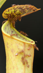 The lower lid of the pitcher plant Nepenthes gracilis secretes nectar that attracts unsuspecting insects. In the rain, the lid becomes a spring-loaded death trap.