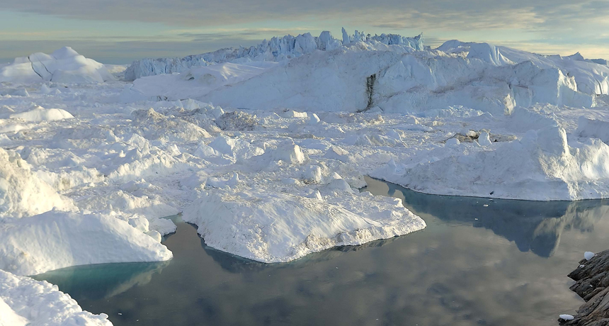 Warming temperatures affect Jakobshavn Glacier (shown) and others in Greenland. Some of that warming is driven by cooling temperatures in the tropical Pacific, a new study suggests.