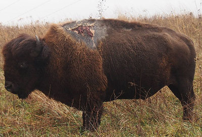 And as with humans, there are animal survivors, too. Karen Viste-Sparkman of the U.S. Fish and Wildlife Service was checking on bison in the Neal Smith National Wildlife Refuge in Iowa in late July 2013 when she spotted a bull standing by himself with a large, clear, bloody burn on his back — most likely the result of a lightning strike. Viste-Sparkman nicknamed the poor bison “Sparky” and checked up on him over the following months. Though she did not expect the bull to survive, he did. Sparky is a bit thinner than the rest of his herd, FWS reports this week, but he appears to be strong and doing well.